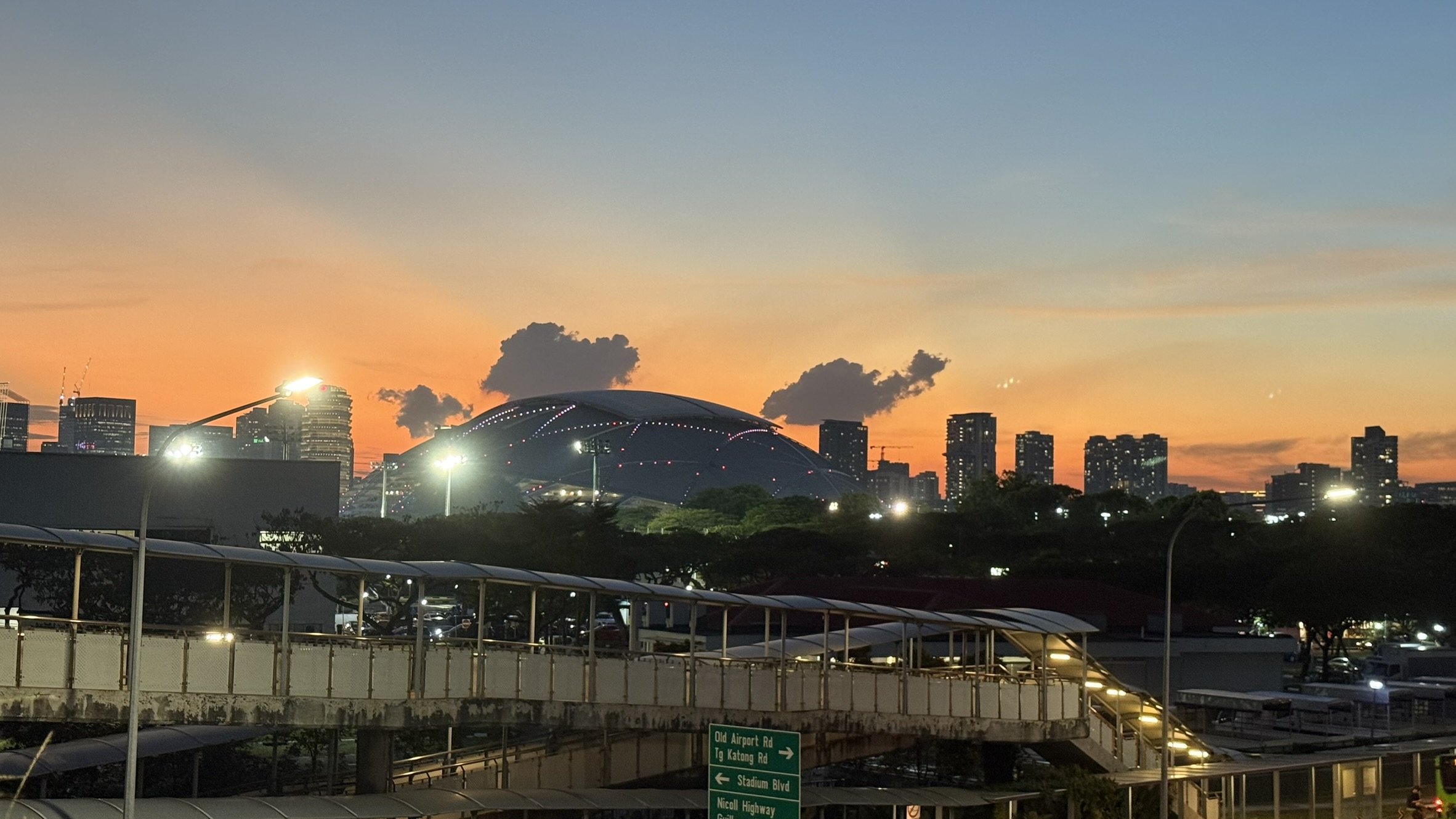 Singapore’s warm, moist air rises and forms cumulus and stratocumulus clouds in the late afternoon. At sunset, these clouds act like giant “canvases”, reflecting and scattering sunlight.