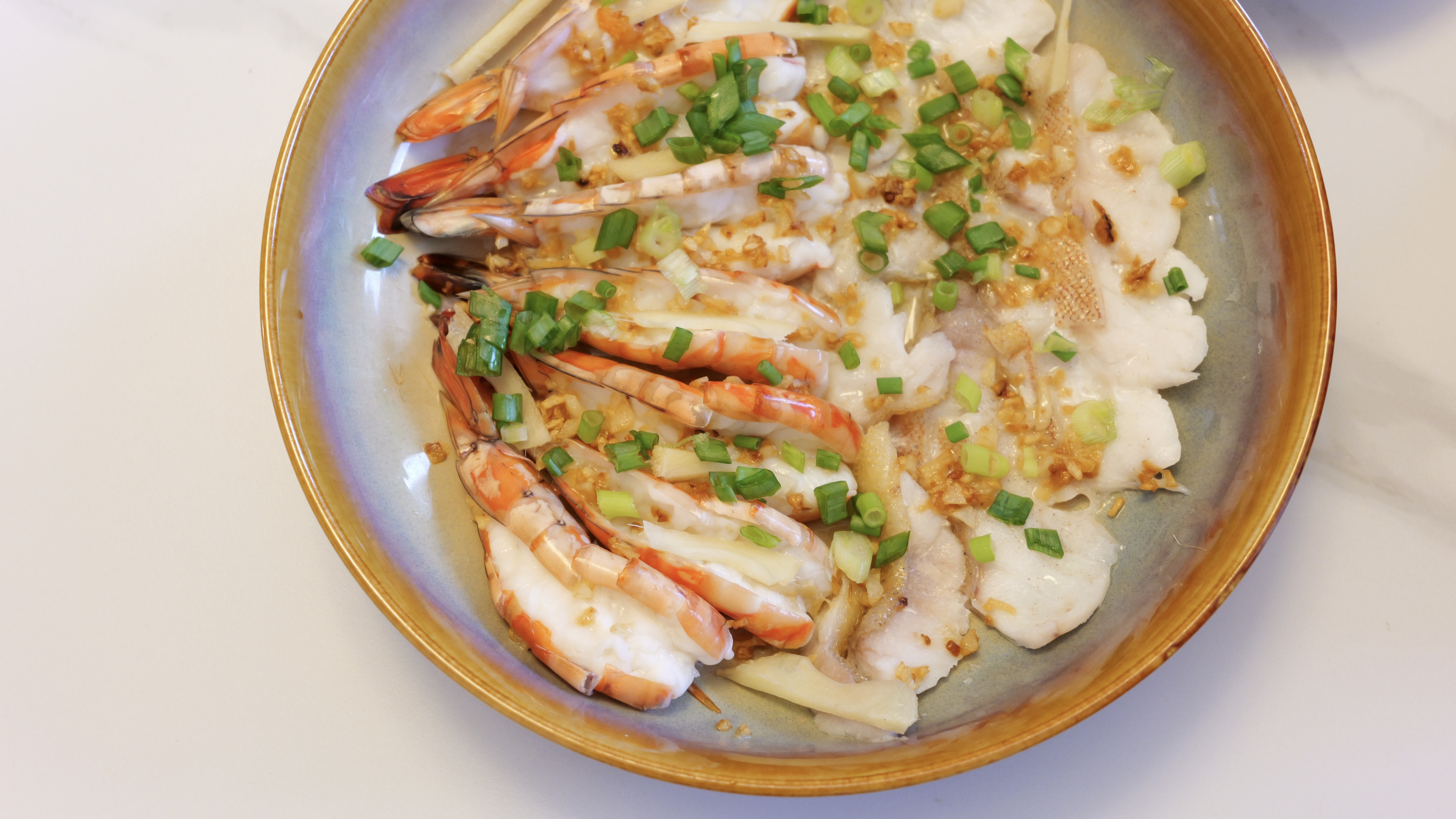 Steamed bamboo shrimp and leopard coral grouper